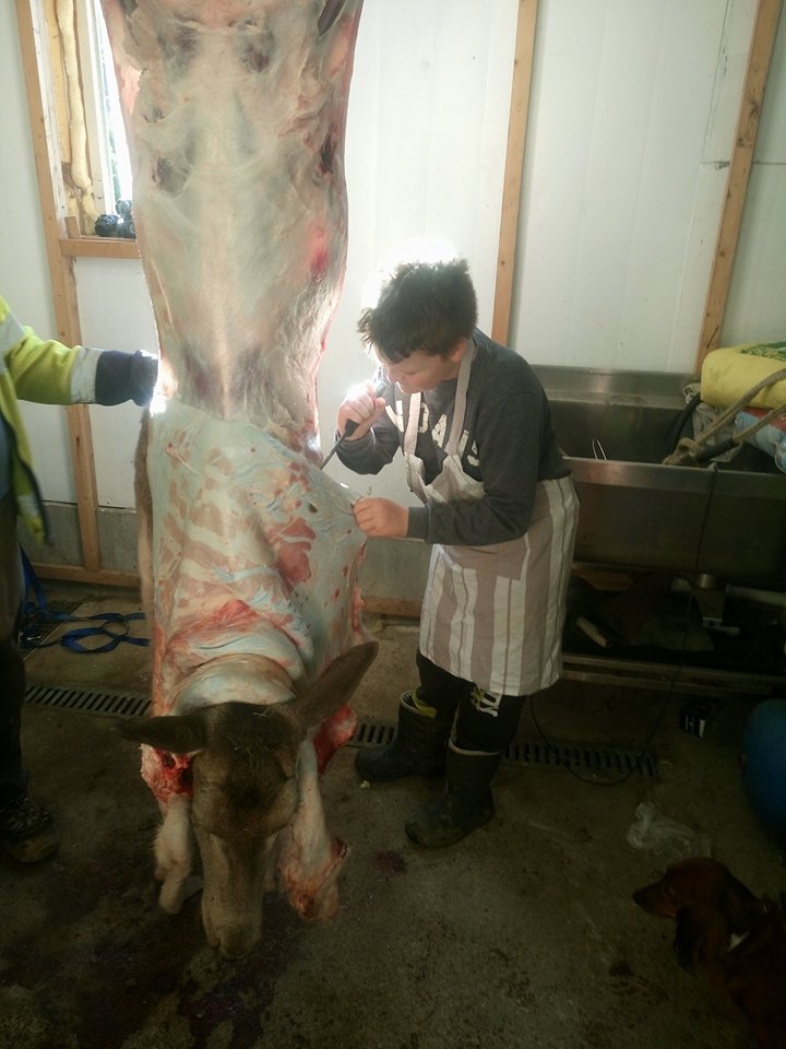 Han er allerede blitt flinke med dyrene på garden å liker å være med på gården med maskiner å lære seg å være med litt i hjorte jakten.